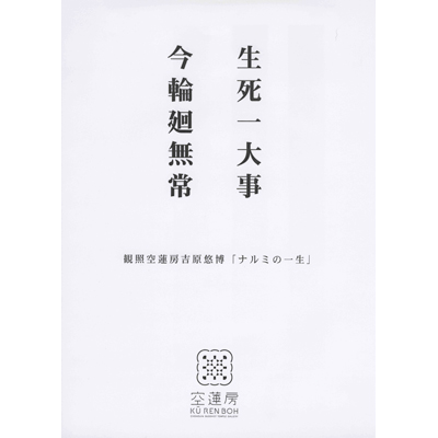 一人の一生とはいえ生死の輪廻はどれほどに繰り返されて来た事でしょう。万物は縁起に因って連鎖しこの一瞬の現実の表層を構築しています。写真は記録します。しかし、それ以上に私達に残るものは、識下に満ちる共生の慈悲による死の覚悟かもしれません。絶え間なき生き死にの中に鏡の様に自分の空性を垣間みる事でしょう。過去未来という言葉の執着、虚構にとらわれる事なき時空に浸る時、何を観る事が出来ましょうか。