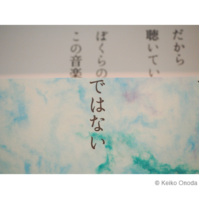 After the Great East Japan Earthquake, now is the time to present our life turning its hidden pleats out, with no conditions at all, to the drastically changing world. What kind of sound will be born that would penetrate poetry calligraphy and dance? We are hoping these expressions would turn into music prompting rebirth of every living thing.